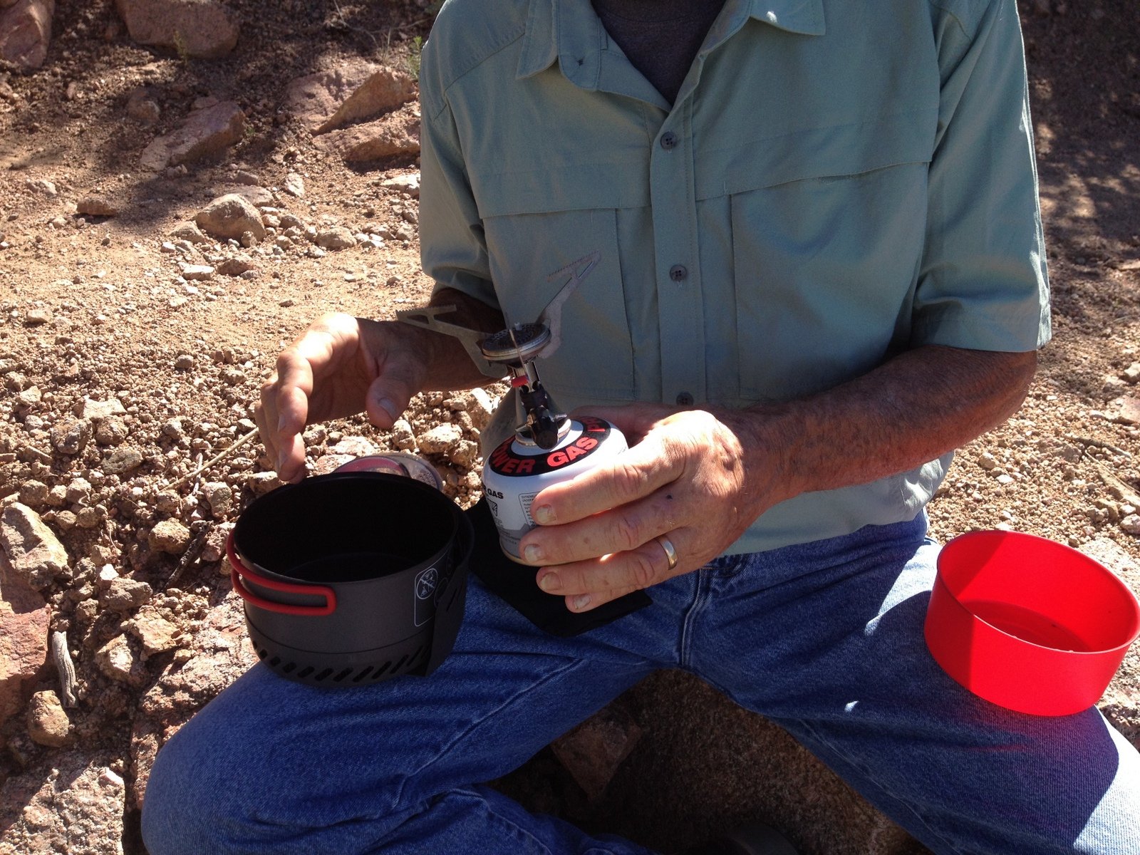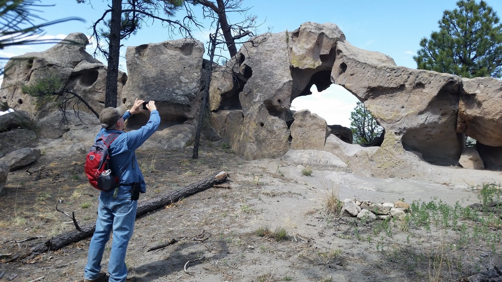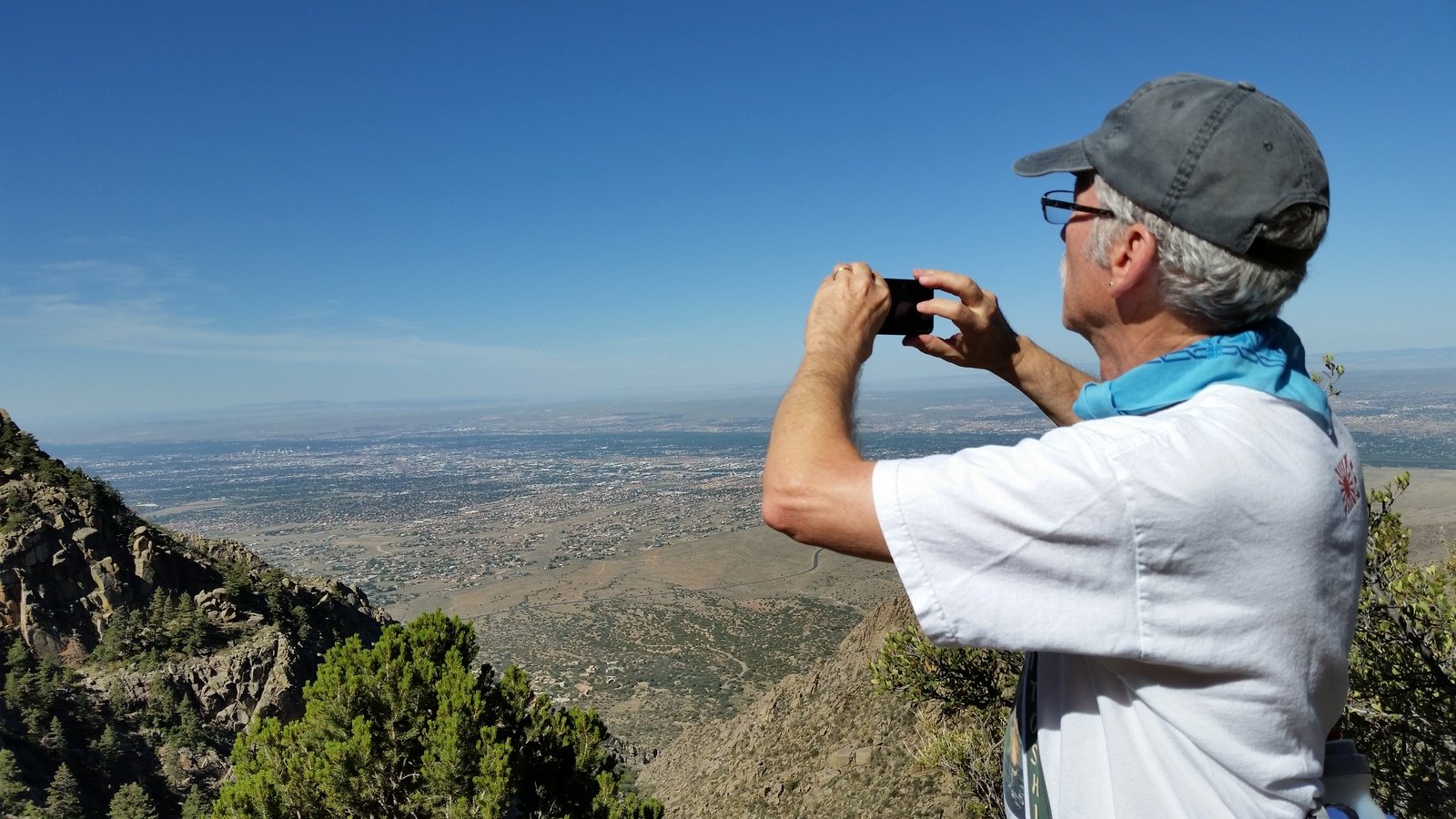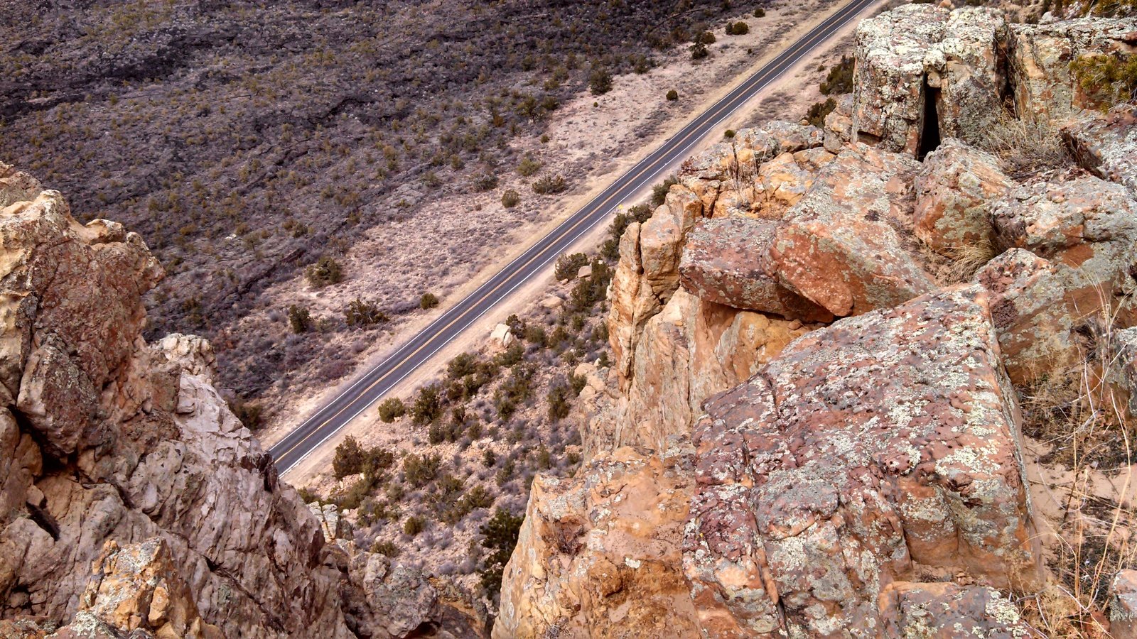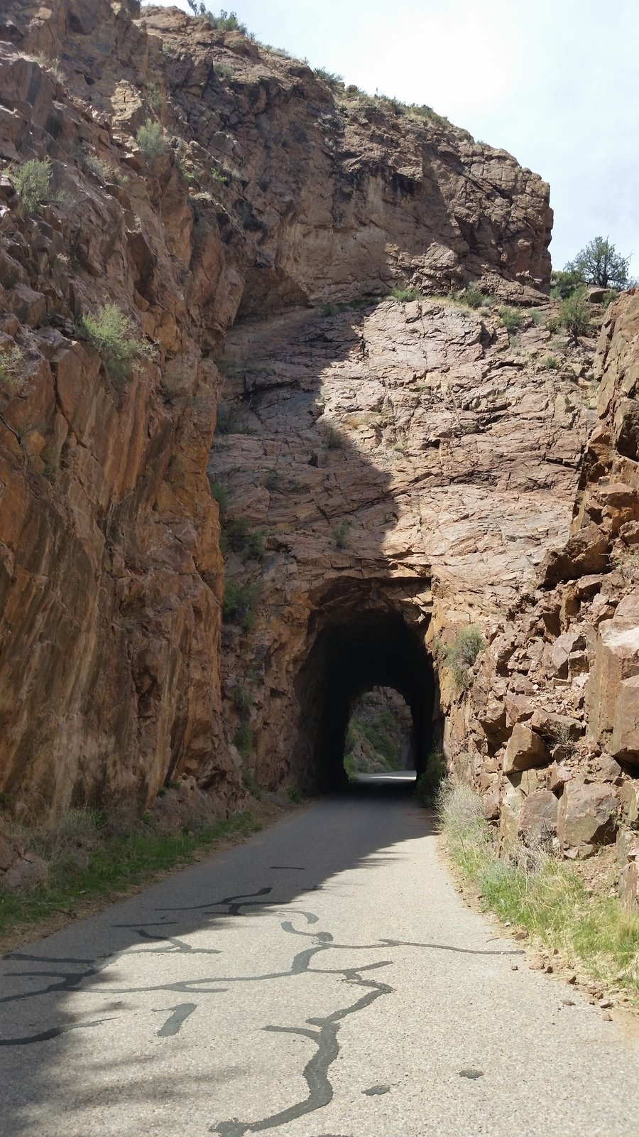The Box is a short canyon with US 60 passing at its mouth.  ‘Tis a favorite location for rock climbers, working the eastern wall of the canyon; we saw 10 or so people ‘on the wall’ the day we visited. The photos below give one an idea of the depth of the canyon – look closely and you will see Vince down in the canyon’s bottom.