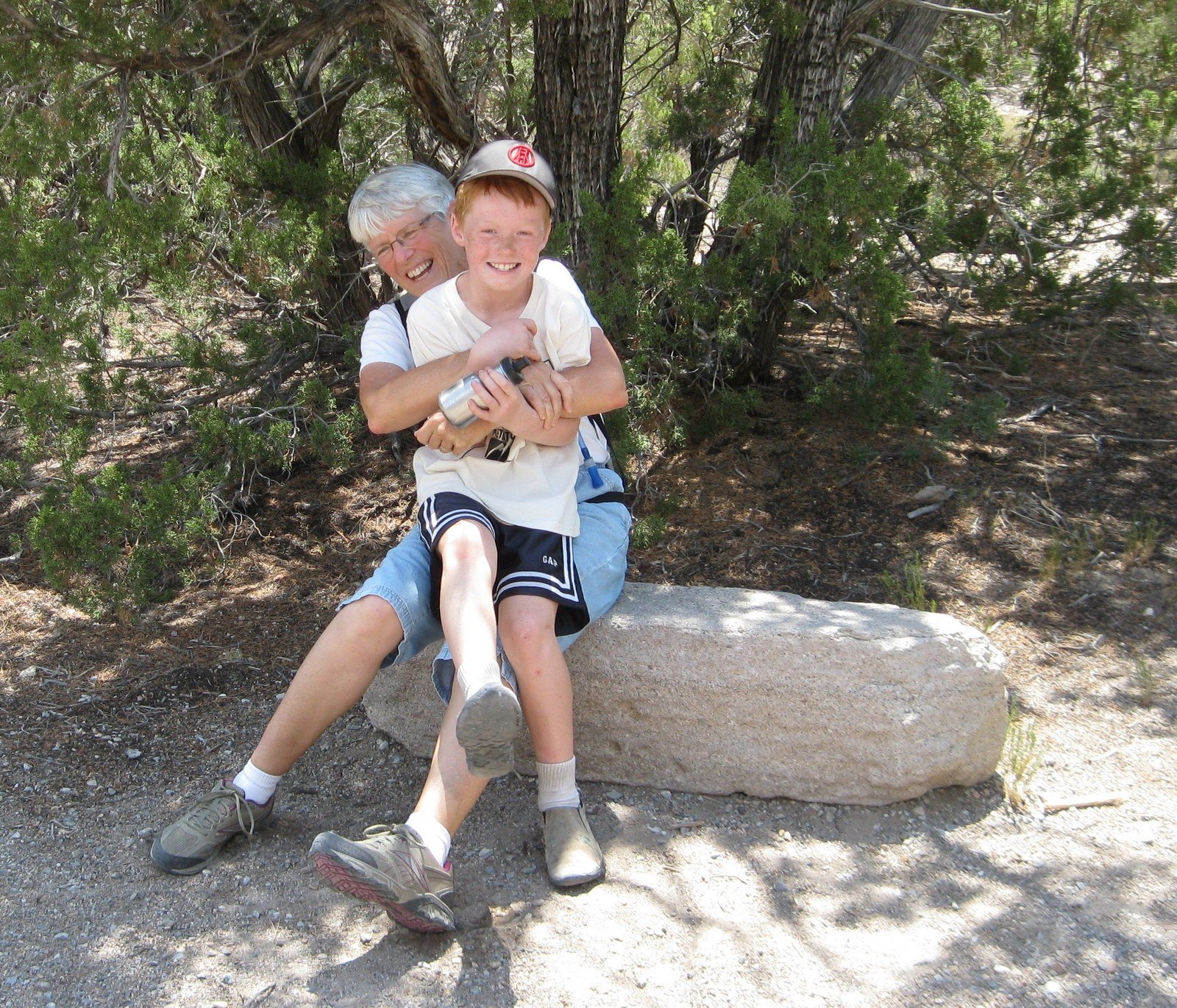 (Note: In those days, I used an old GPS device which recorded numerous erroneous positions.  As a result, the track is jagged, showing that we went up on the canyon wall; I assure you we did not, but you can get the gist of our track.)