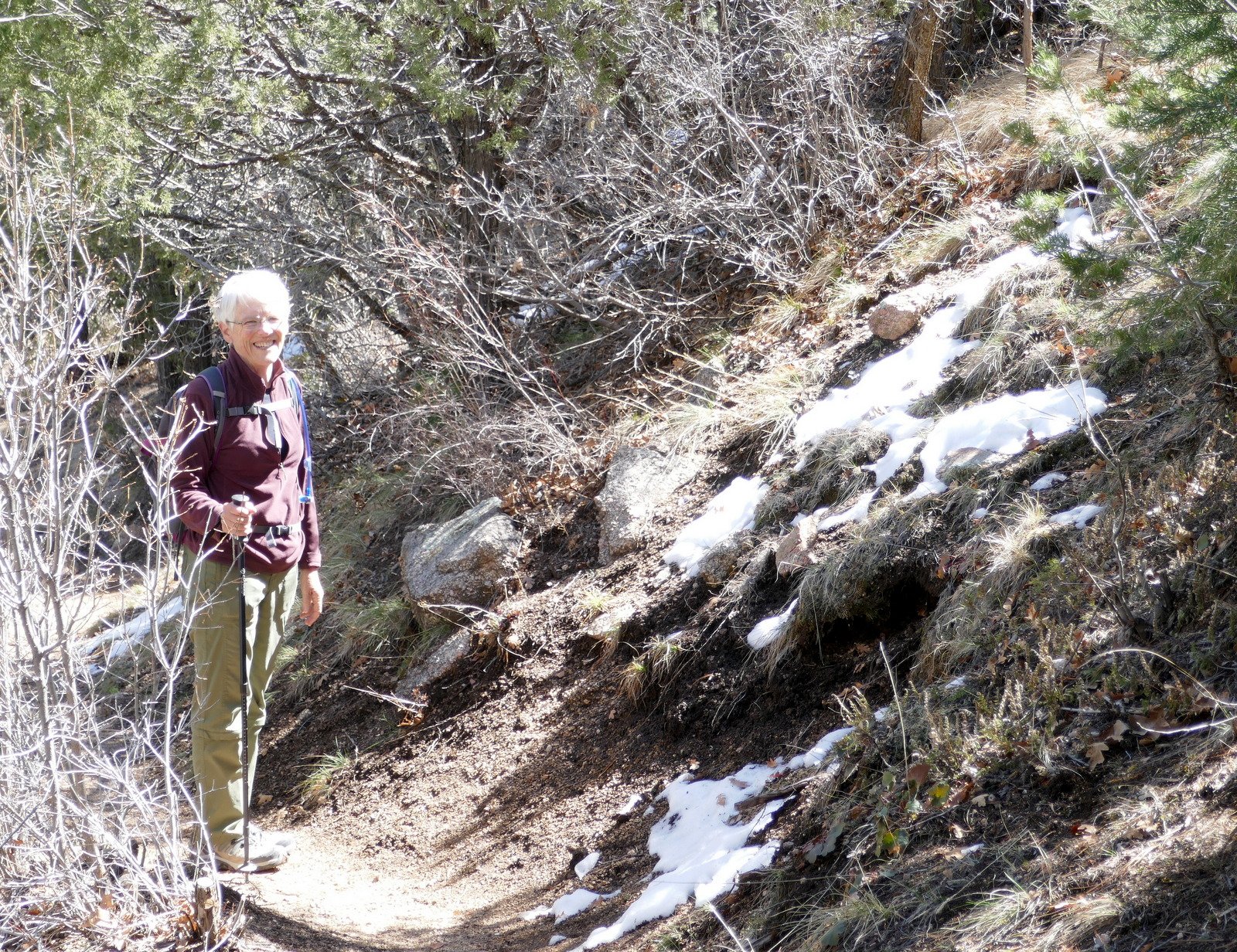 Today we returned to an old friend, Three Gun Springs trail. This trail was our 3rd hike after moving to New Mexico back in 2010. And we hiked it twice more in 2011, and more recently  in 2017 and 2019 (see References below for a link to this set of hikes). This  was first time for Pat and me to go to the top where Three Gun Springs meets the Embudo Trail that comes up on the western slope of the Sandias. And we have a goal for this year, to hike end-to-end, up one trail and down the other.