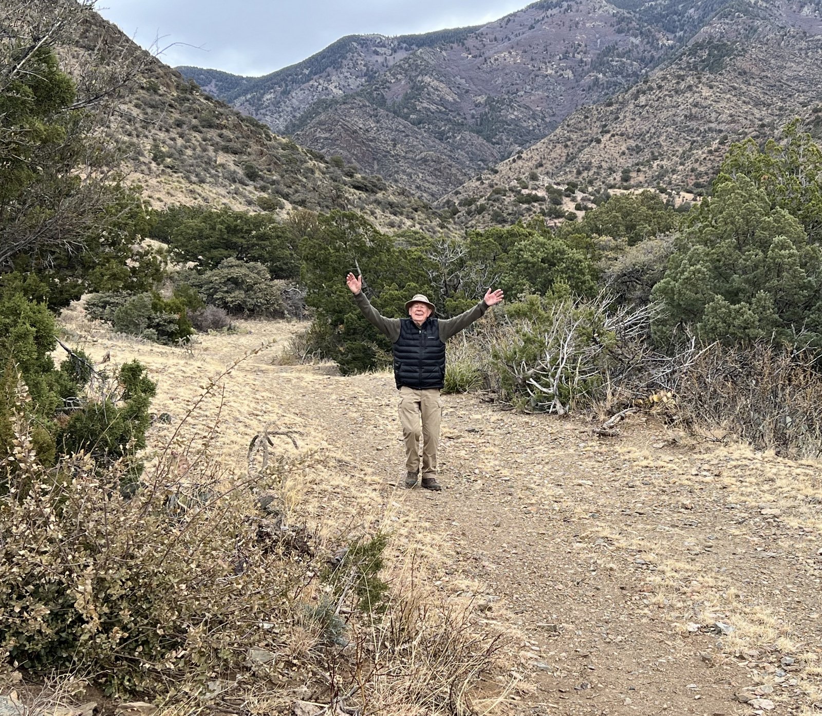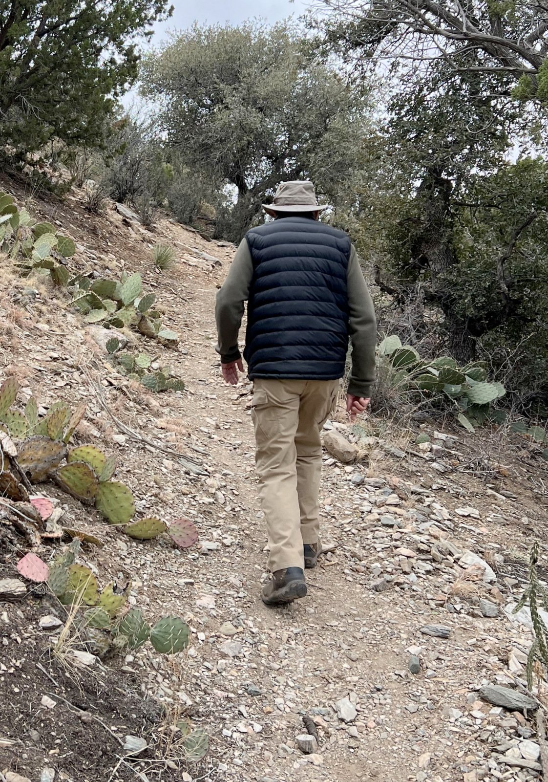 Having not hiked for 10 months, this for me was an exploratory excursion. For a month I’ve been walking up to 3 miles on the level, smooth Bosque Trails along the Rio Grande. But to be on a real trail with uneven surfaces, rocks, even ups-and-downs, would be “breaking new ground” and testing my endurance.