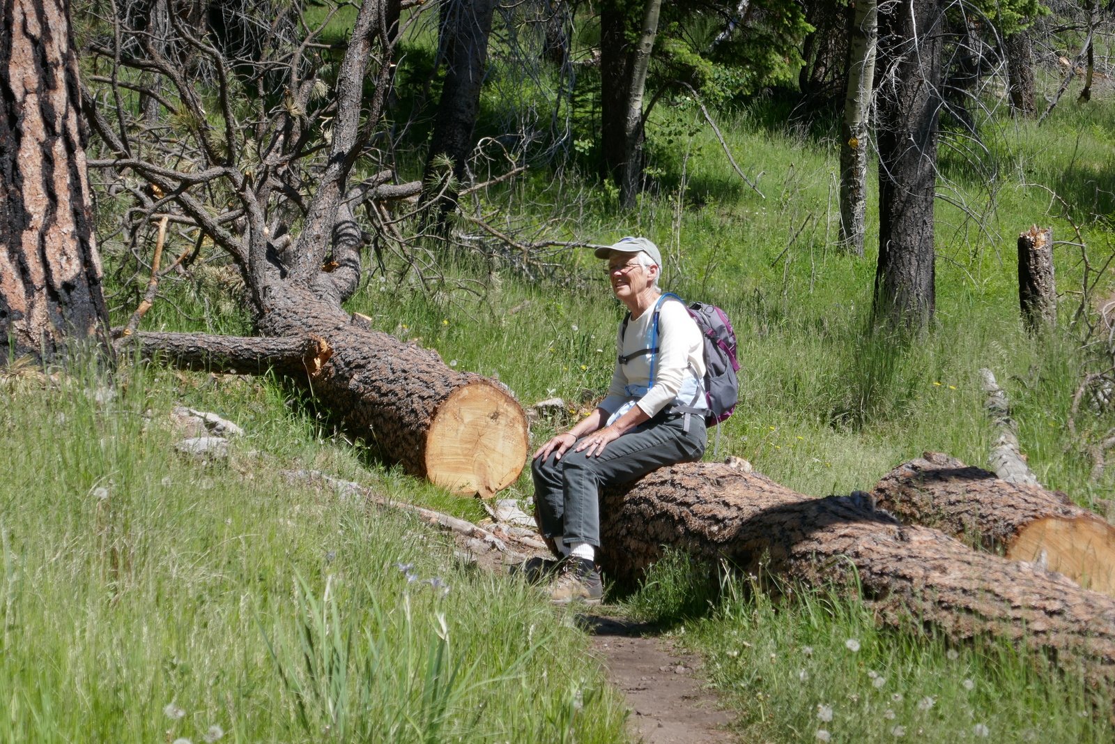 We retreated from the summit to the edge of the sparsely forested area to find some shade for out mid-hike break/lunch. After enjoying cups of Ramen Soup (a first for us on a hike – these hit the spot) as well as PB&J sandwich, carrots, and a cookie, we headed down, taking time to appreciate the late flowers, green of the grasses, and .. simply being outdoors again in Mother Nature’s garden.