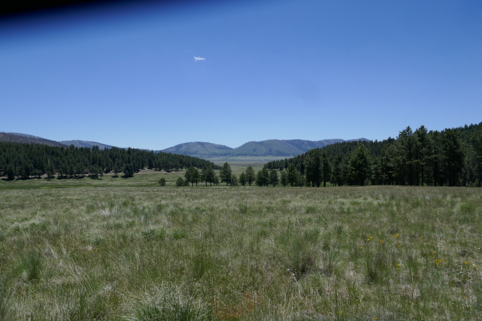 Our 2nd day of a 4 day visit to Valles Caldera. We brought our bikes to learn if we’re ready for biking on back country roads. A friend’s description of the roads in the Valle encouraged us to give it a go; he judged the roads’ surface to be fair and elevation changes would be minimal within the Valle.