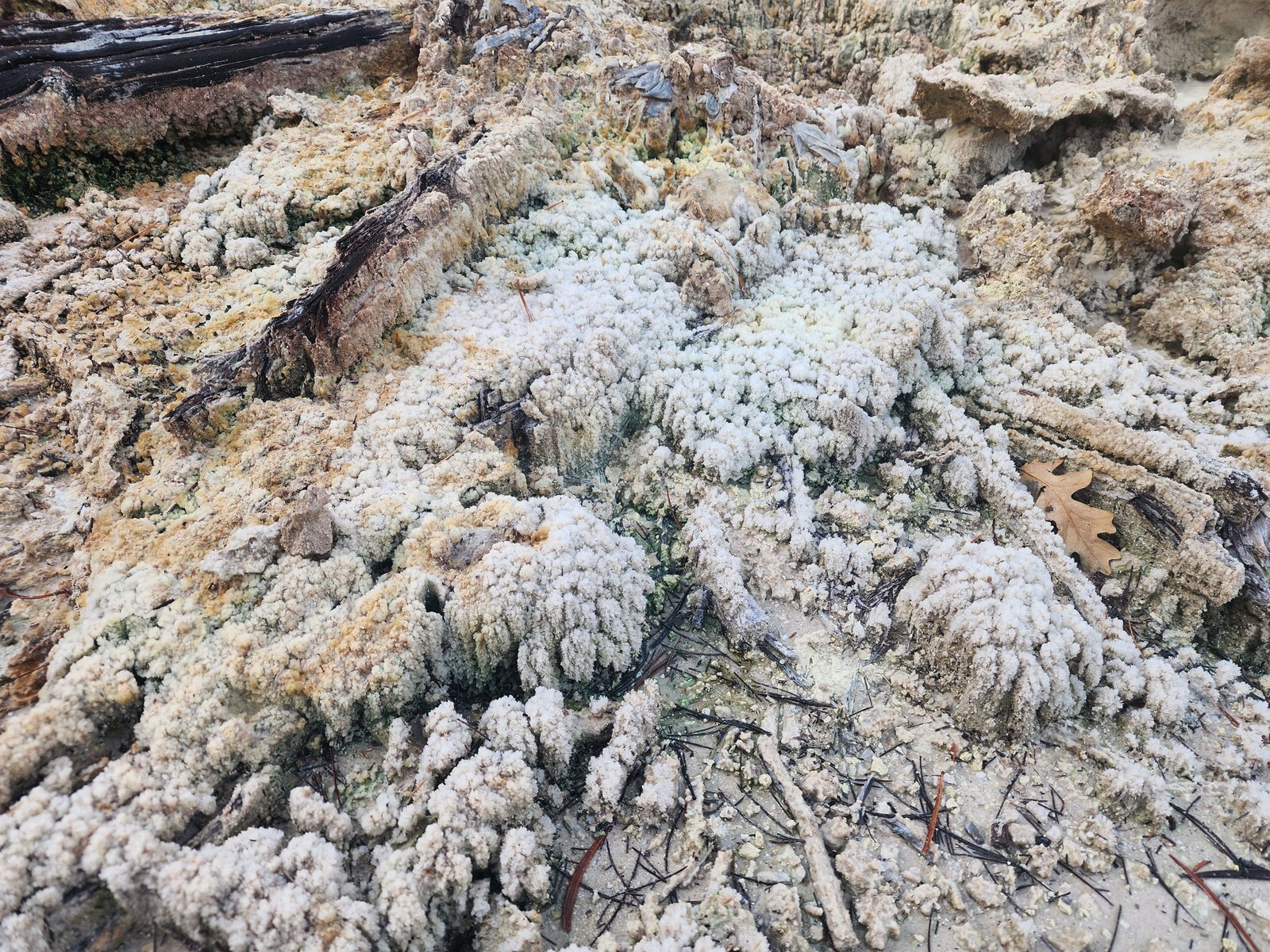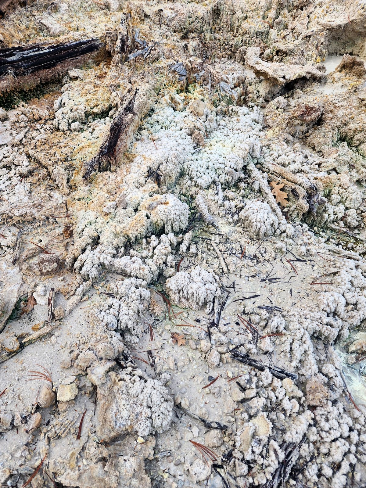 I can’t add much to my description for the hike back in 2020; the Sulphur Springs are about the same. As before, there were a few orifices with bubbling, steaming water. And we noticed this year bubbles out in the middle of the small pond.