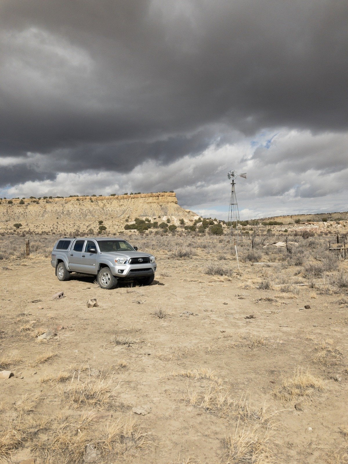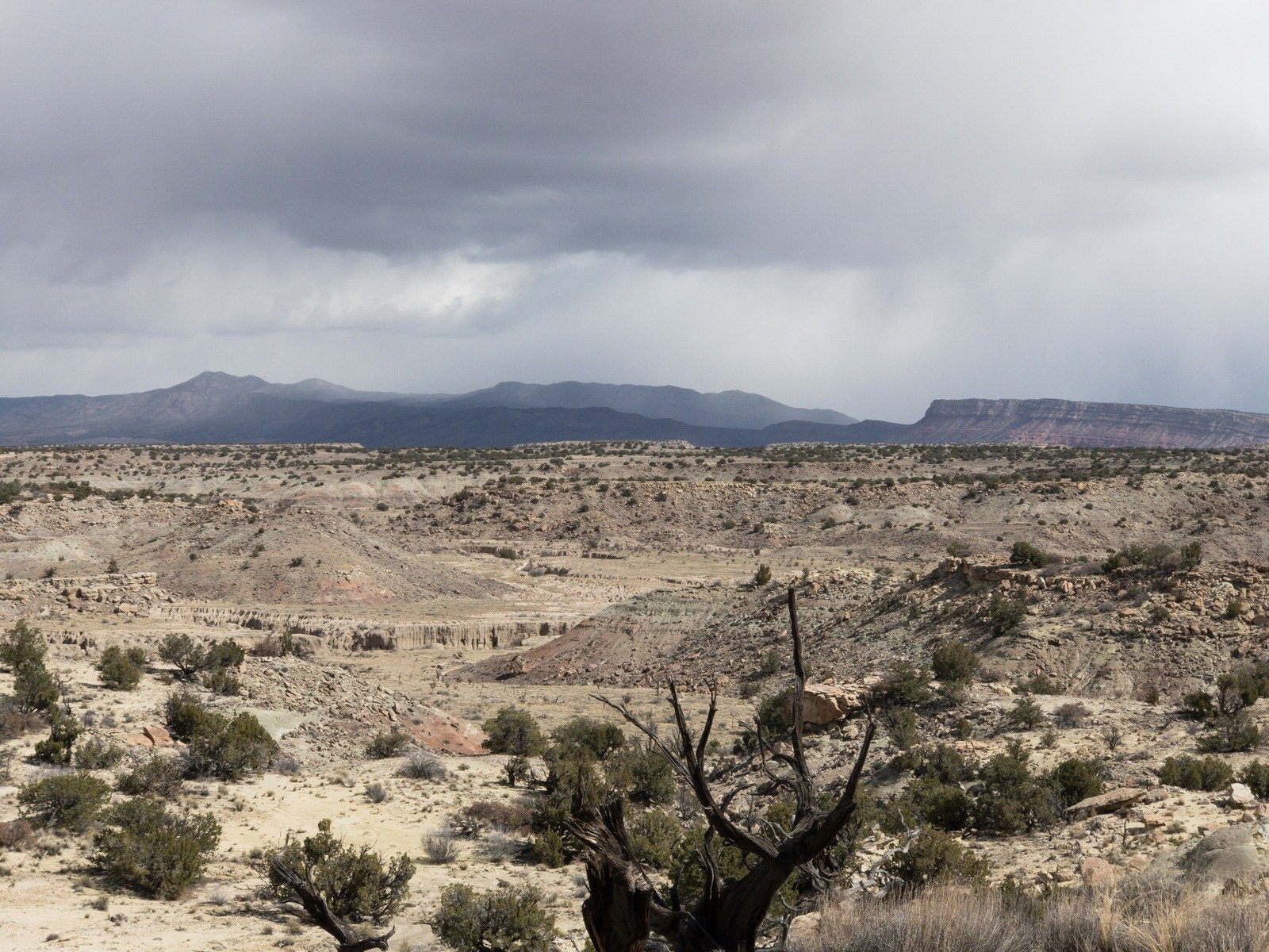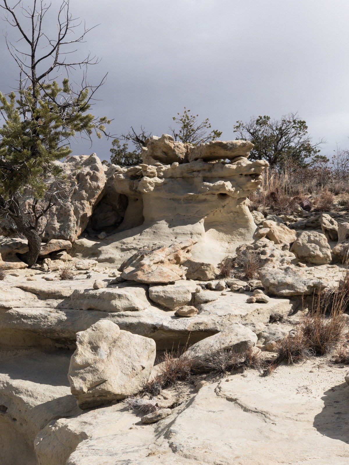 Jay here: Perfect example of New Mexico weather changing rapidly and biting us in the butt. We just barely made it back to the truck when the snow squall hit. You can’t photograph snowfall (it melts in the lens, ha), but it was coming down hard as we left the trailhead. Within minutes we were out of this very localized squall and racing for the paved highway.